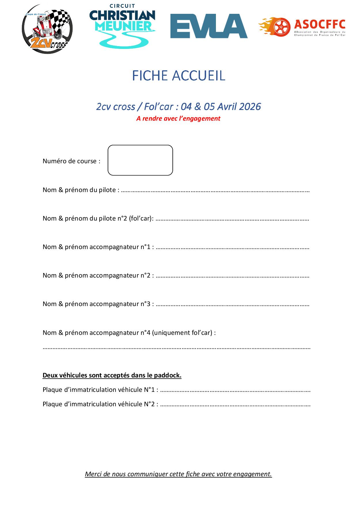 Voici l’engagement, la fiche d’accueil que vous devrez envoyer en même temps à l’adresse suivante :